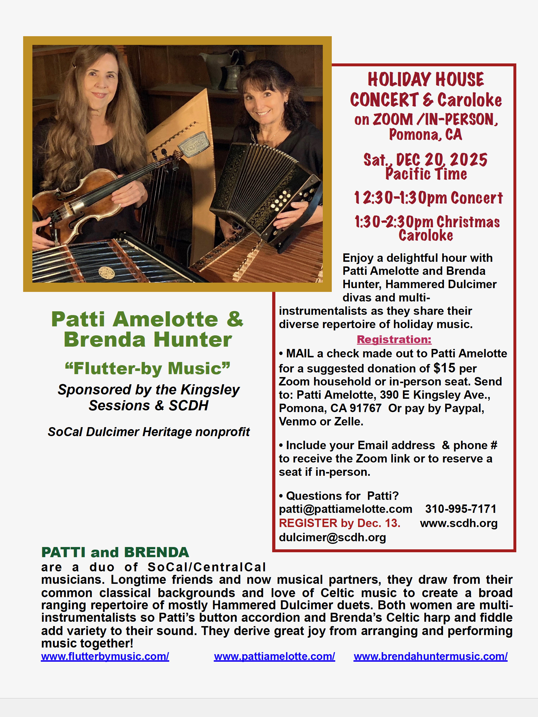 Intermediate Hammered Dulcimer Classes with Patti Amelotte on Zoom Mondays, 5 - 6pm